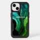 Pretty chic and elegant girly faux glitter marble art bling in different shades of blue green and black Iphone case. Beautiful, fun and trendy cover for the art loving hip trendsetter. Show off your personal style and feel cool with a unique design on your mobile or customize it over another product of your choice. Add your name and monogram it with a cool and modern calligraphy typography. It makes the perfect gift idea for a sweet 16 birthday, wedding, bridal shower, anniversaries, baby showers or bachelorette parties, valentines day, Christmas or as a gift in general. PLEASE NOTE: These are flat printed graphics - no real glitter, jewels or raised parts.