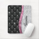 Add a touch of glitter and glam to your home office or dorm with this elegant personalized mouse pad. This chic design template features elegant girly faux silver and pink glitter and rhinestones bling with black tuffted design. To make it extra special, it is also monogrammed and personalized with name in yellow. click the "customize further" link and use the design tool to modify the design if you like.