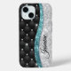 Pretty chic and elegant girly faux silver teal turquoise aqua glitter and rhinestones bling with black tuffted design to create a special unique stylish case to protect your device. Beautiful, modern and cool cover for the trend-savvy and art-loving hip trendsetter. This stylish sophisticated design would be great for girls who enjoy wearing classy sparkly designs. Show off your personal style, look fashionable, trendy and feel stylish with a unique design on a mobile device accessory or customize it over another product of your choice.