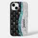 Pretty chic and elegant girly faux silver teal turquoise aqua glitter and rhinestones bling with black tuffted design to create a special unique stylish case to protect your device. Beautiful, modern and cool cover for the trend-savvy and art-loving hip trendsetter. This stylish sophisticated design would be great for girls who enjoy wearing classy sparkly designs. Show off your personal style, look fashionable, trendy and feel stylish with a unique design on a mobile device accessory or customize it over another product of your choice.