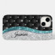 Chic girly faux Silver glitter black teal monogram Case-Mate iPhone Case
