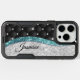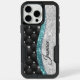Chic girly faux Silver glitter black teal monogram iPhone 15 Pro Max Case