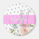 Chic & Girly Floral White Pink Gray Monogram Name Magnet