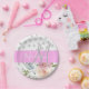 Chic & Girly Floral White Pink Gray Monogram Name Paper Plates