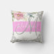 Chic & Girly Floral White Pink Gray Monogram Name Throw Pillow