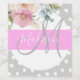 Chic & Girly Floral White Pink Gray Monogram Name Wine Label