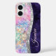 Pretty chic and elegant girly girly iridescent unicorn rainbow iPhone case to protect your device. This iPhone case is adorned with faux glitter holographic rainbow palette. The shimmering design sparkles in shades of pink, blue and green, creating a lively, girly aesthetic that feels playful and chic.