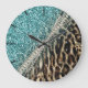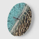 Chic Girly Leopard Print Blue Glitter Large Clock