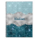 Make back to school fun with this Cute personalized Notebook. It is designed with elegant girly faux glitter bling in mint, green teal and faux silver glitter.