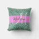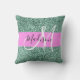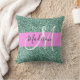 Chic Glam Pink Green Glitter Sparkle Name Monogram Throw Pillow