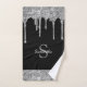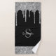 Chic Glitter Drips Sparkle Silver Black Monogram Bath Towel Set