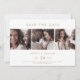 This chic gold typography 3 photo template save the date card is perfect for a modern wedding. The simple design features classic minimalist gold and white typography with a rustic boho feel. Customizable in any color. Keep the design minimal and elegant, as is, or personalize it by adding your own graphics and artwork.