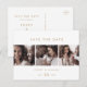 This chic gold 3 photo template save the date postcard is perfect for a modern wedding. The simple design features classic minimalist gold and white typography with a rustic boho feel. Customizable in any color. Keep the design minimal and elegant, as is, or personalize it by adding your own graphics and artwork.