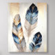 Chic Gold and Blue Feather Glitter Acrylic Photo Tile