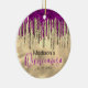 Chic gold and hot pink drips Quinceanera Ceramic Ornament. Ceramic ornament. An ornament for a girly and glamorous quinceanera. Personalize and add a name. Perfect as party decoration, favor, keepsake or as a gift.