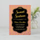 A chic sweet sixteen birthday party invitation that is sure to make a lasting impression. This stylish design features a fun leopard print pattern adorned in pressed gold foil on a pink background overlayed with a black frame for your personalized text. In addition to the leopard print, the words "Sweet Sixteen", your personalized text and a little crown are also accented in pressed gold foil. Easily change the background color from pink to any other color in the Design Tool.