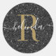 Chic Gold Black Glitter Monogram Name Classic Round Sticker