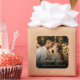 Modern Elegant Pretty Black and Gold Calligraphy Script Thank You | Couple Photo Wedding sticker/label for yor gift favor. Featuring an elegant handwritten style calligraphy overlay with text „Thank You” on black gradient.