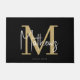 Elegant Chic Gold Black White Monogram Family Name Doormat. Features stylish gold colored, white, and gray text on black. Personalise with your initial, family name, since date or address (or any text you choose). All text, fonts, and colors can be customized by you with Zazzle's personalization tools - so you can color code to match your aesthetic perfectly. We invite you to visit our Zazzle store, GJ Design Co, to view matching products and more.
