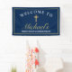 Chic Gold Blue Cross Boys First Communion Welcome Banner