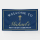 Welcome family and friends to your son's First Holy Communion with this Chic Gold Cross First Holy Communion Welcome Banner. This 1st Communion Reception Welcome Banner features a simple gold cross against a class navy blue background. Personalize with your child's first name.
