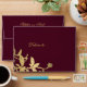 Moody dark burgundy and faux gold classy vintage antique romantic monogrammed wedding invitation return address personalized envelope with botanical foliage branches and elegant classic calligraphy script. +++++++++ Easy to personalize with your details!
