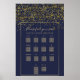 Chic gold confetti navy blue wedding table seating chart. Perfect for chic, elegant theme wedding