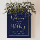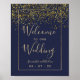 Chic gold confetti navy blue wedding welcome poster