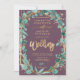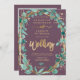 Chic gold eucalyptus purple photo script wedding invitation