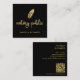 Chic Gold Feather Notary Name Modern Script QR Square Business Card
