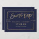 Gold typography on customizable navy blue gold frame color block, and faux gold geometric stripes chic save the date wedding , perfect for elegant, stylish wedding,