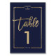 Chic Gold typography on customizable navy blue gold half frame, and faux rose gold geometric stripes chic table number wedding , perfect for elegant, beach wedding,