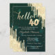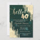 Chic Gold Glitter Drips Green 40th Birthday Invitation