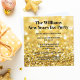 Chic New Years Eve party invitation with elegant black script over gold glitter. A glamorous invite to ring in 2025. Customize these trendy, modern invites for your gala.