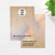 This earring display card features a pinstripe black border, a place to add your logo, and matching simple but elegant black typography on a faux printed gold glitter with pink, peach, blue, and purple iridescent holographic ombre gradient glamorous and chic background. On the back, it includes contact information that can be changed completely or personalized to your details. It's a professional, elegant, and stylish way to display your product with pride. (earring holes are printed markers only, puncturing must be completed by the customer)