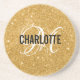 Chic gold glitter monogram name coaster. Personalize name and initial.