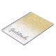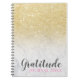 Modern yellow gold glitter white marble gratitude journal diary with pink sparkles on marble and elegant script font typography.