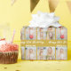 Customize your own chic gold birthday wrapping paper with a cute 5 photo collage. Add the person's name and year in white script above the five photographs for elegant personalized gifts.