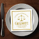 This chic gold custom law school graduation party paper napkin features modern typography for a class of 2025 graduate. Customize with your graduating year under the scales of justice symbol for this great personalized lawyer or attorney gift of congratulations.