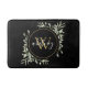 Chic Gold Monogram Elegant Script Greenery Black Bath Mat