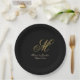 Chic Gold Monogram Script Black Wedding Paper Plates