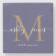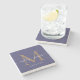 Chic Gold Monogram Script Names Wedding Date Blue Stone Coaster