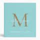 Chic Gold Monogram Script Turquoise Blue Wedding 3 Ring Binder