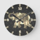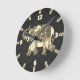 Chic Gold Paisley Floral Elephant,Black Damask Round Clock