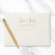 Modern light cream envelope for your engagement announcements, save the dates, wedding invitations, thank you cards and newlywed correspondence featuring your first names in a chic gold script and your address in classic gold serif typography.