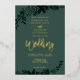 Chic gold typography Floral green wedding invitation with hand painted green watercolor foliage. The green color background is fully customizable with real gold foil.