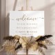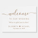 Chic wedding welcome foam board sign featuring "Welcome To Our Wedding" in a blend of simple gold typography and an elegant gold script with swashes, "We're so glad you're here" in classic gold serif typography, your first names joined together with a heart and your wedding date.