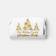 A chic gold script Christmas party Hershey's Miniatures with your family name under beautiful trees made of golden snowflakes above Merry Christmas. Trendy holiday favors with an artistic design.