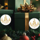 A chic gold script Christmas gift sticker with your family name under beautiful trees made of golden snowflakes above Merry Christmas. Trendy holiday stickers with an artistic snowflake design.