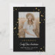 This chic yet whimsical graduation announcement features a black background (customizable), a sprinkling of faux gold stars, faux gold "GRADUATE", and one vertical photo. You can customize this design even further by adding another photo or additional text to the back.